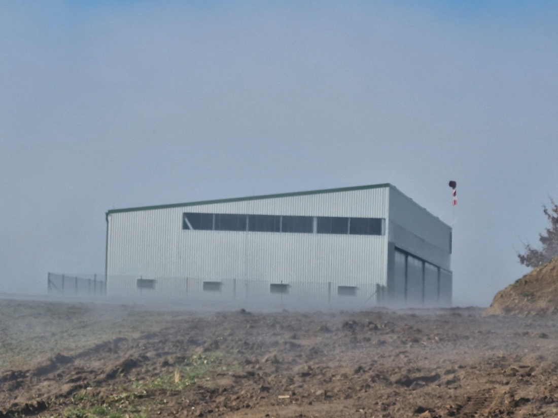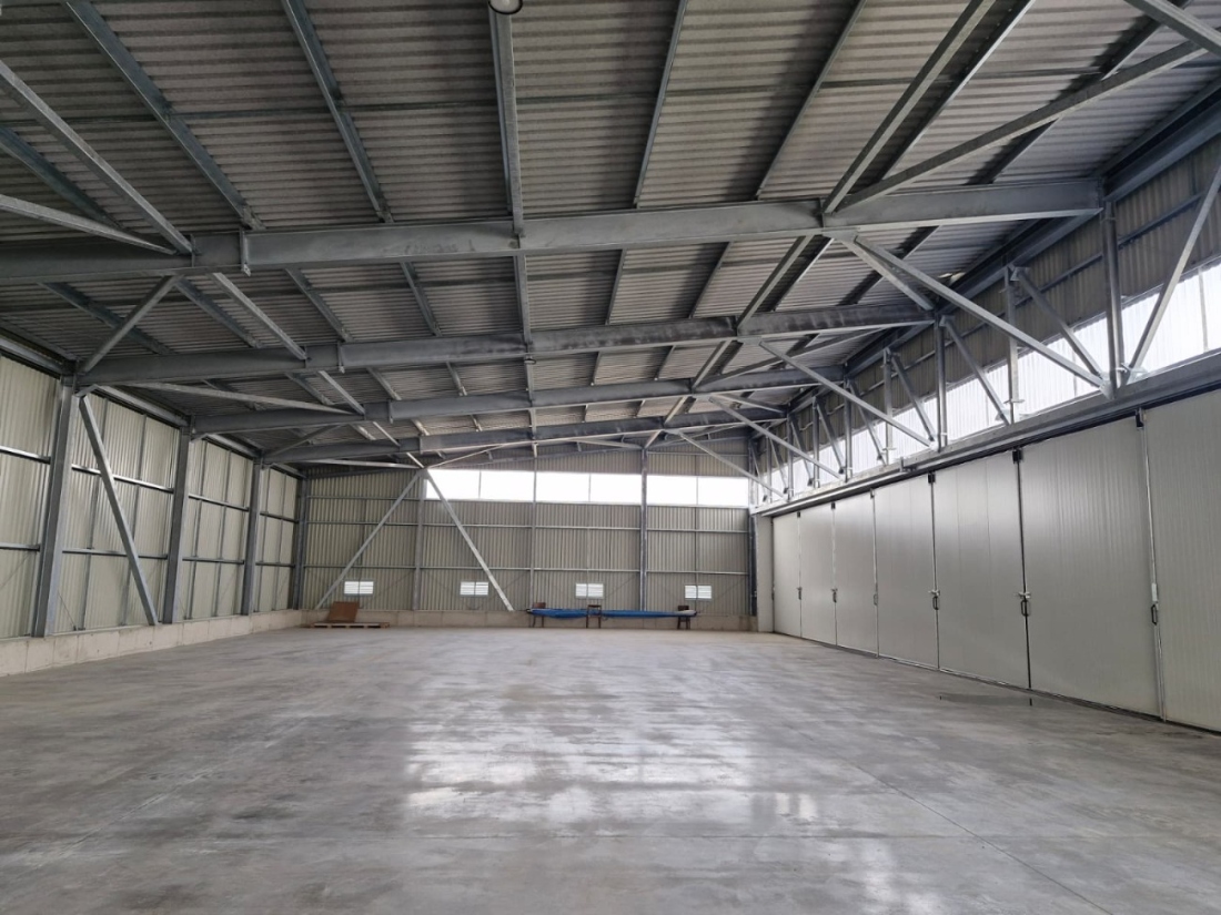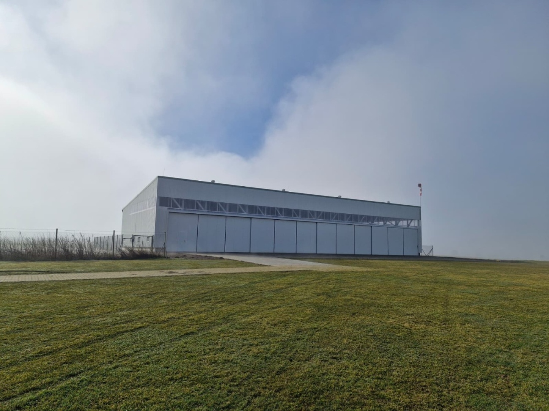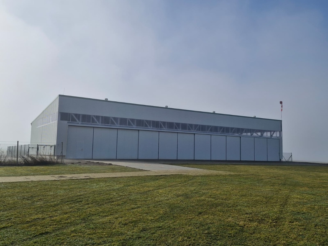Hangár je tvořen ocelovou konstrukcí z vlastní kovovýroby: